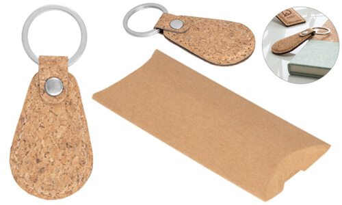 Portachiavi in sughero. Fornito con scatola di cartone kraft smontata. Dimensione: 35 x 55 x 3 mm