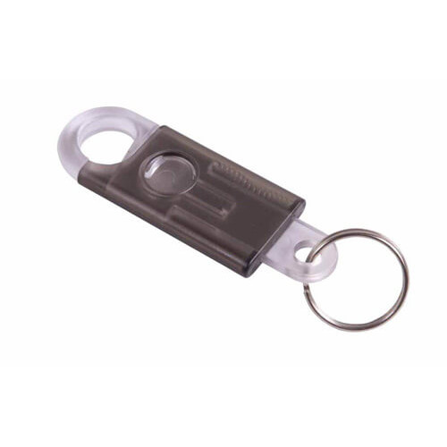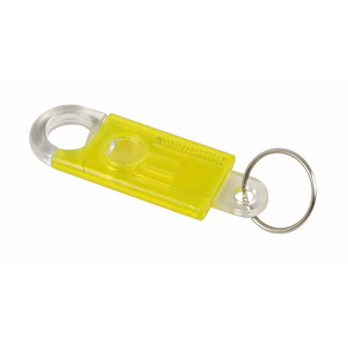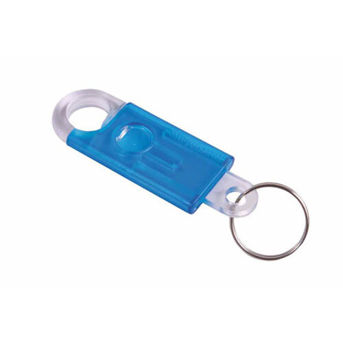 Portachiavi con moschettone incorporato meccanismo a scatto per apertura moschettone h 7,5 cm. Colori disponibili: grigio, rosso, verde, azzurro, blu, giallo.