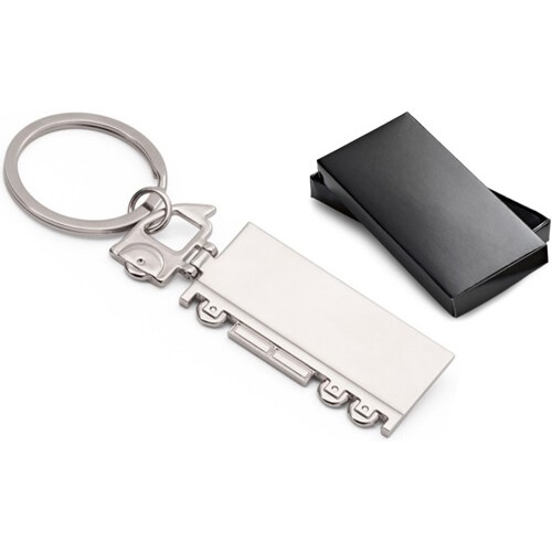 Portachiavi in metallo a forma di camion. Questo portachiavi puĂł essere personalizzato ed Ă© fornito in scatola regalo. Dimensione: 26 x 71 x 3 mm colori: cromato