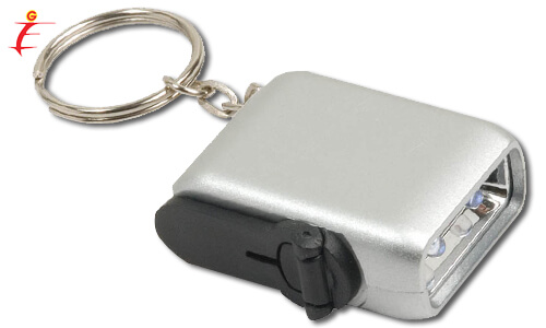 Mini Torcia ricaricabile a dinamo con portachiavi dimensioni (4 x 3 cm) colore argento.