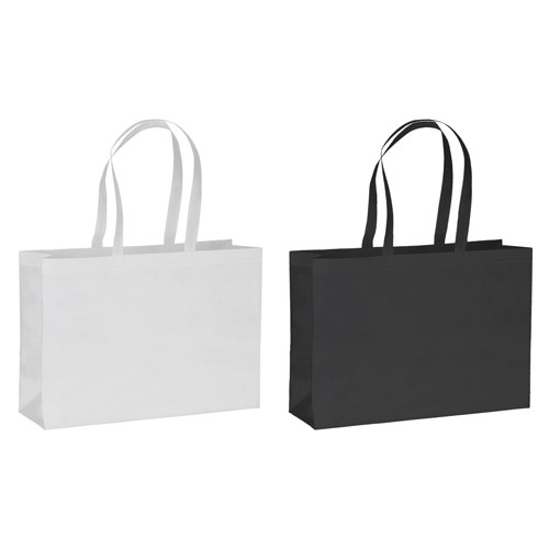Borsa shopper in PET riciclato (R-PET TNT) da 100 g/m², leggera, resistente e realizzata con materiali ecosostenibili. Termosaldata e dotata di soffietto, garantisce grande capacità e praticità . I manici lunghi permettono un comodo trasporto sia a mano che a spalla. Il gadget perfetto per aziende che desiderano unire sostenibilità , praticità e visibilità del proprio brand.