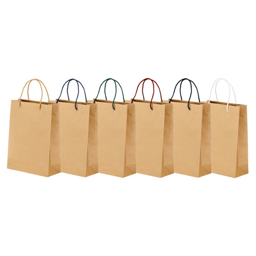 Sacchetto in carta naturale riciclata 150 g/m², resistente e dall’aspetto artigianale, ideale per confezioni regalo, boutique e iniziative promozionali eco-friendly. Dotato di soffietto per una maggiore capienza e manici corti intrecciati in carta colorata, unisce praticità e stile sostenibile. Ideale per un packaging aziendale elegante e responsabile.