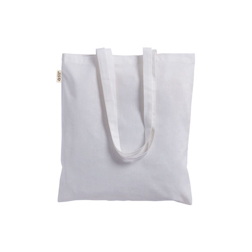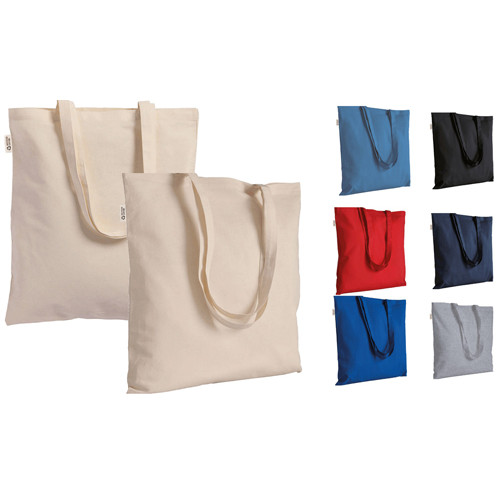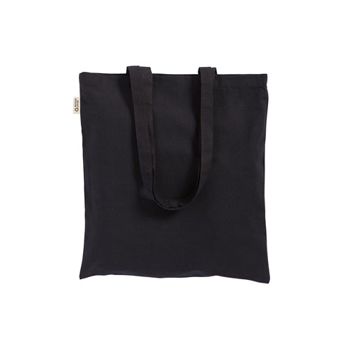 Borsa shopper a tinta unita in cotone riciclato e poliestere riciclato, progettata per il trasporto quotidiano grazie ai manici lunghi utilizzabili a mano e a spalla.