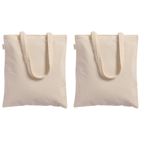 Borsa shopper a tinta unita in cotone riciclato progettata per il trasporto quotidiano, con manici lunghi per un utilizzo comodo a mano e a spalla.