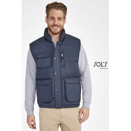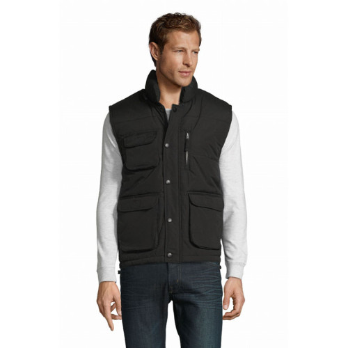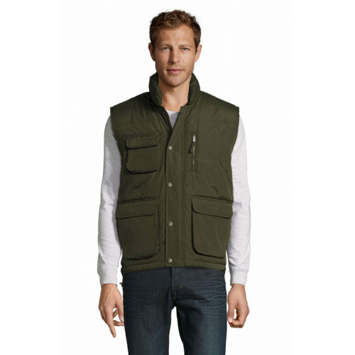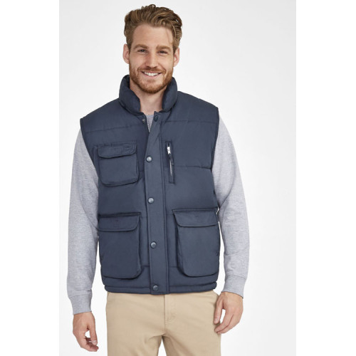 Gilet imbottito – Il suo tessuto gli conferisce un'eccellente qualità e lo rende piacevole al tatto e da indossare. Articolo di ottima fattura, morbido e funzionale grazie alle sue 8 tasche. Ampia gamma di taglie. – Collo alto trapuntato Numerose tasche Elastico antivento nel giromanica Coulisse elastica in vita