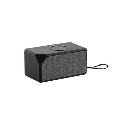 Altoparlante portatile in ABS con caricatore wireless, elegante e multifunzione, perfetto per ascoltare musica e ricaricare dispositivi con stile.