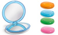 Specchietto doppio. Dimensione: ø 68 x 9 mm colori: rosa, verde chiaro, azzurro, arancione