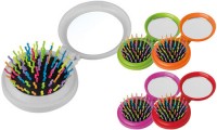 Spazzola pieghevole con specchietto. Dimensione: 105 x 35 x 25 mm colori: bianco