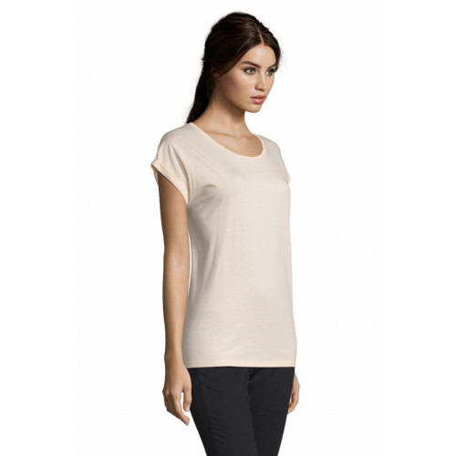 T-shirt donna girocollo – Nastro di rinforzo sul collo Collo rotondo Maniche senza cuciture Risvolto sul fondo delle maniche Tagliata e cucita