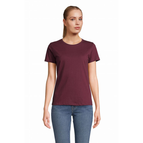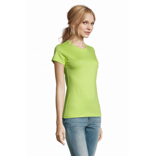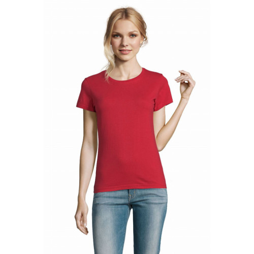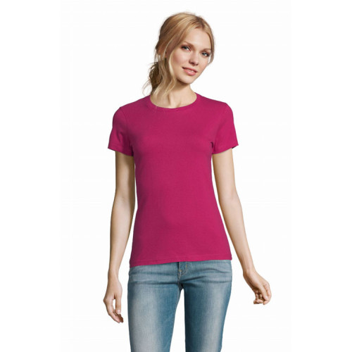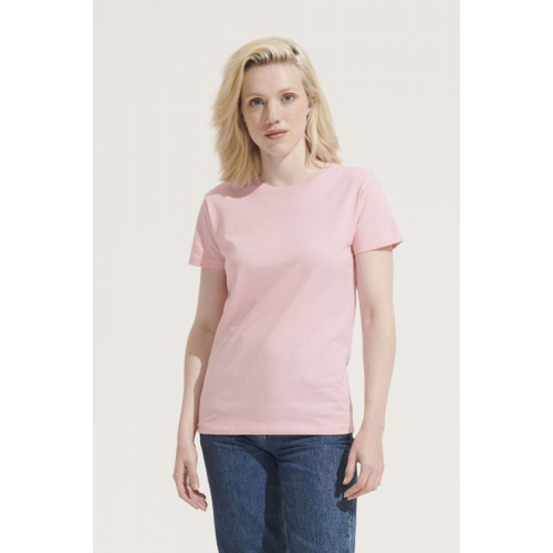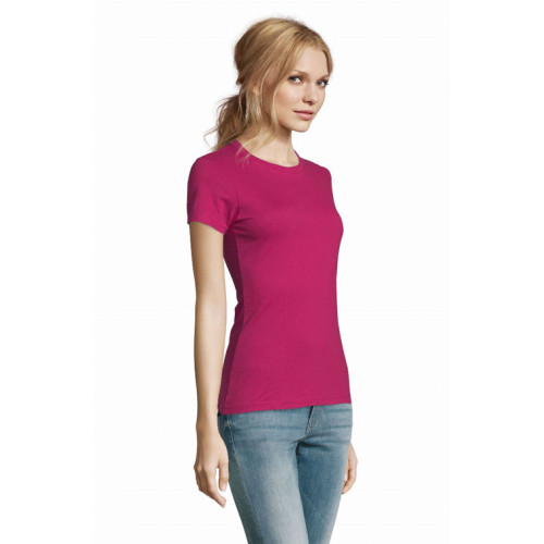 T-shirt donna girocollo – La SOL'S Imperial Women é ormai diventata la t-shirt di riferimento per il 190 in particolare per le rifiniture, la qualità , i colori, le taglie disponibili e la possibilità di essere abbinata alla versione uomo e bambino. Livello di stock unico in Europa. – Nastro di rinforzo sul collo Girocollo con bordo a costina Maniche corte Tagliata e cucita