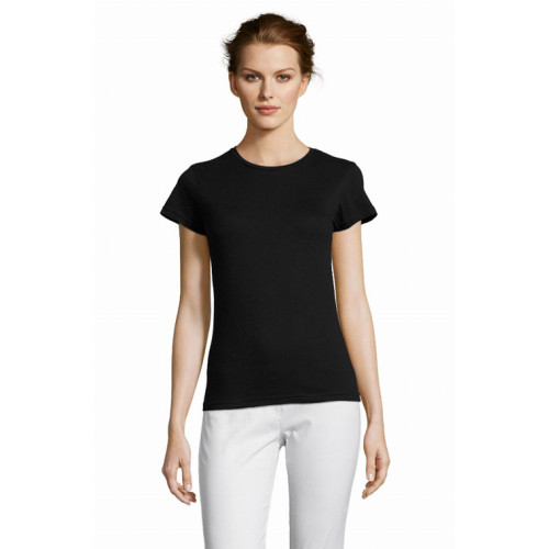 Magliette da donna, punto vita sfiancato - girocollo ribassato in jersey - confezionate a girocollo con manica corta in cotone pettinato da 150 gr. Disponibili nei colori: blu royal, grigio, celeste, rosa, verde militare, giallo, nero, verde, arancio, blu scuro, rosso, marrone, viola. Taglie: s-m-l-xl-xxl.