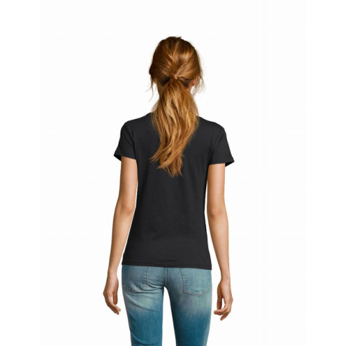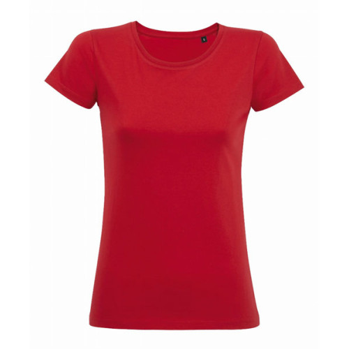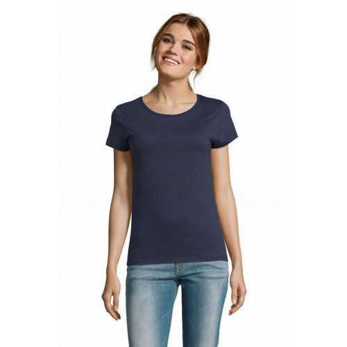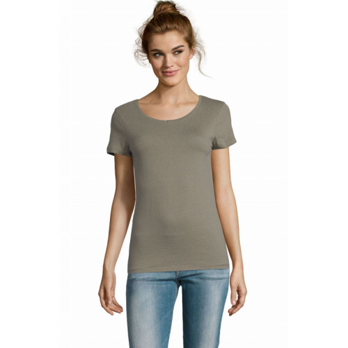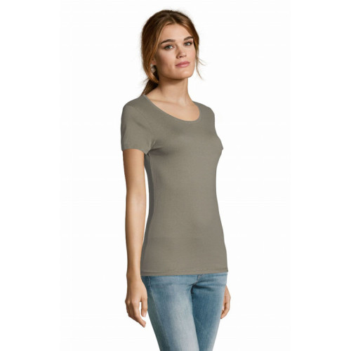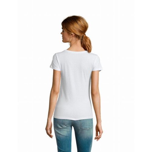 T-shirt donna girocollo – Girocollo con bordo a costina Punto vita sfiancato Maniche corte Nastro di rinforzo sul collo Tagliata e cucita