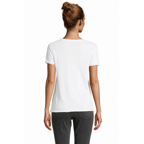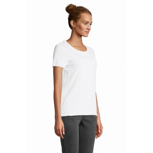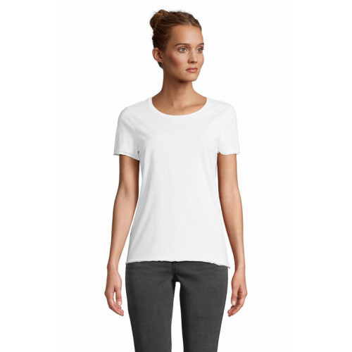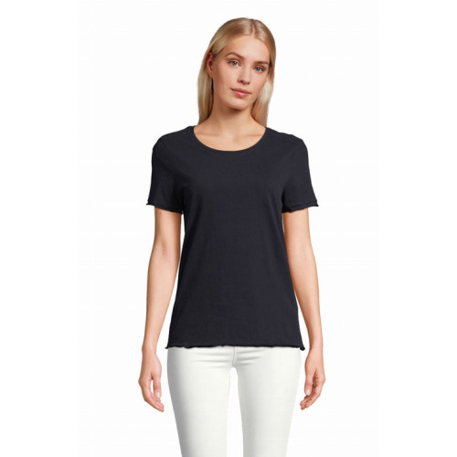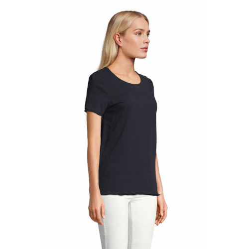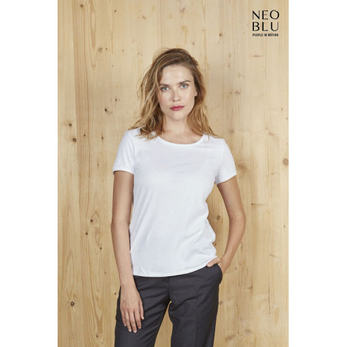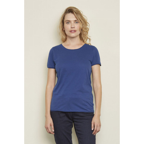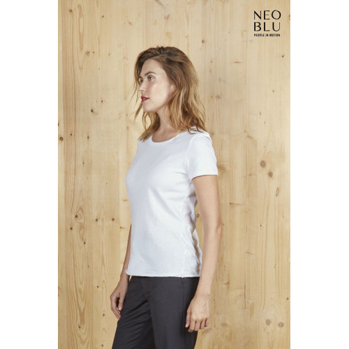 T-shirt donna manica corta Leonard – Jersey 120 - Dal concept rispettoso dell'ambiente, questa t-shirt a maniche corte in cotone biologico è un ottimo basic per un look trendy e impegnato. – Maniche corte Girocollo a costine in cotone mercerizzato Rifiniture a taglio vivo sul fondo manica e fondo del capo Nastro di rinforzo sul collo