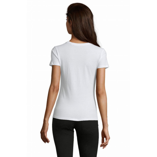 T-shirt donna slim girocollo manica corta – Nastro di rinforzo sul collo Girocollo con bordo a costina Maniche corte Tagliata e cucita