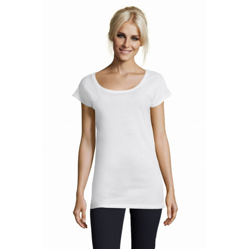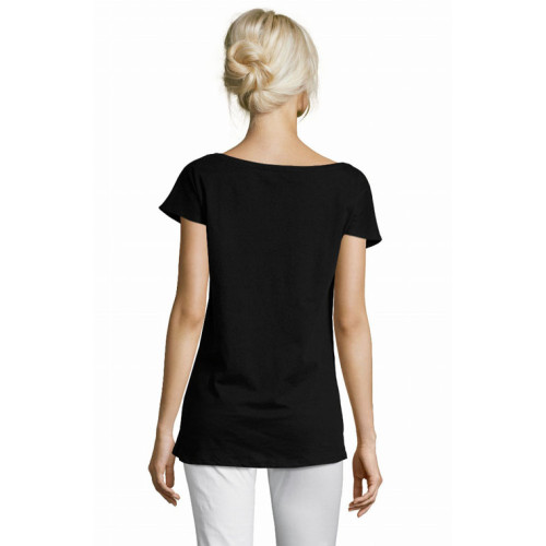 T-shirt lunga donna manica corta kimono – T-shirt 100% fashion con una mano effetto seta ed un taglio estremamente femminile. – Scollatura in jersey Ampia scollatura Nastro di rinforzo sul collo Maniche kimono