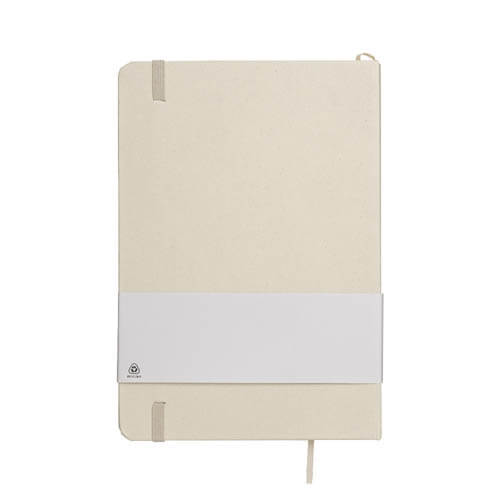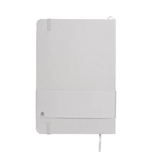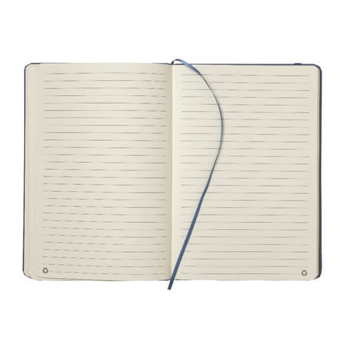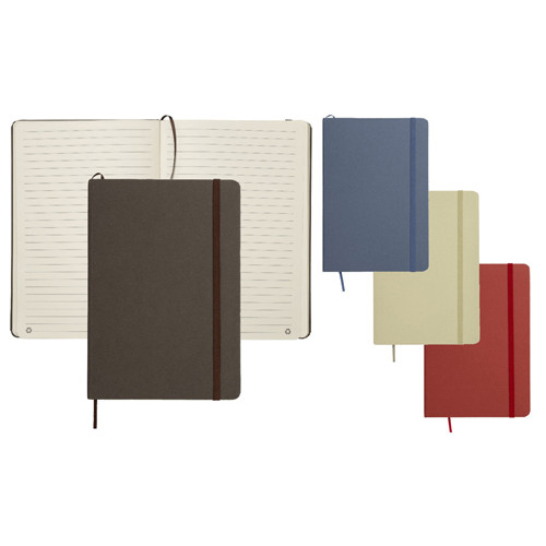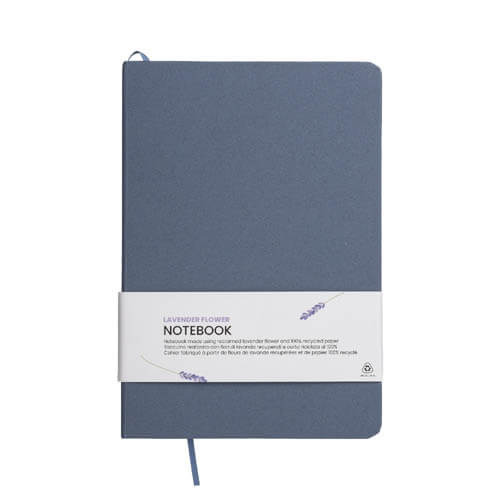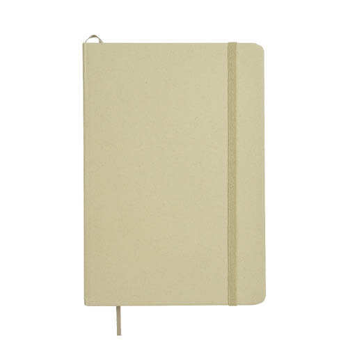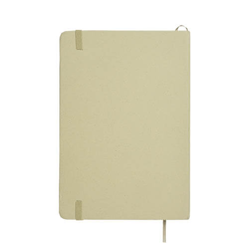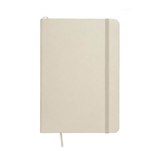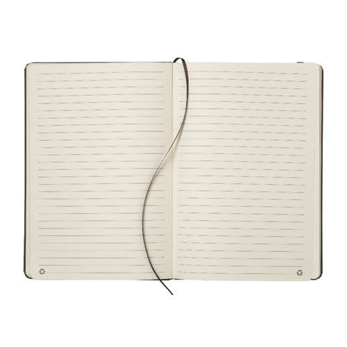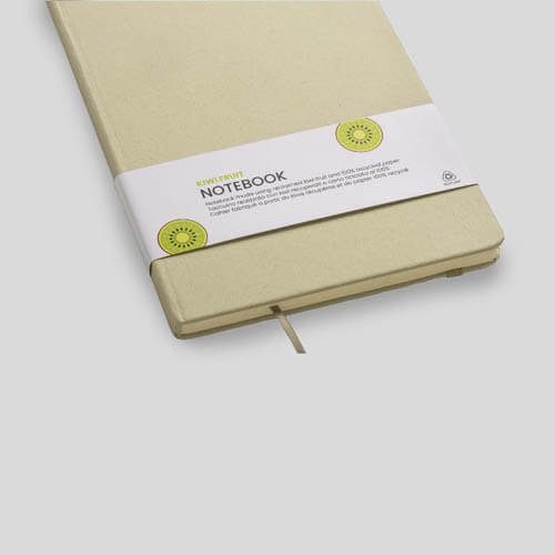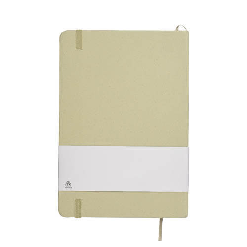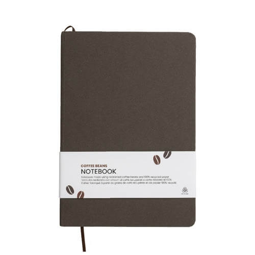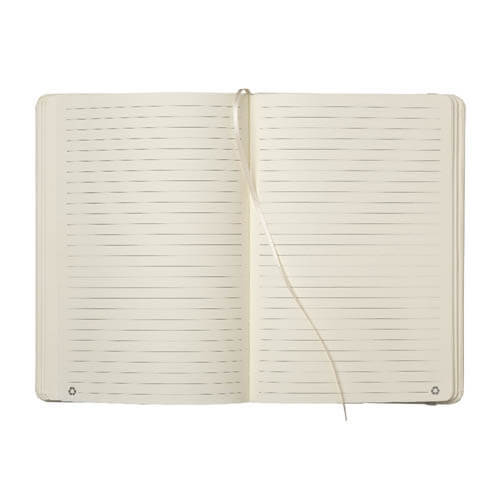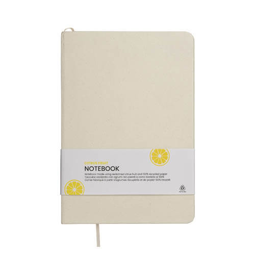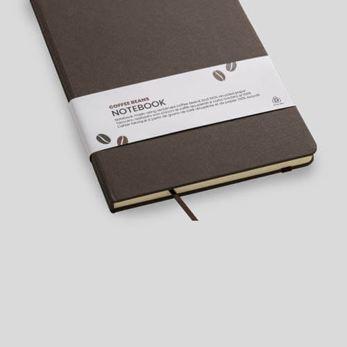 Quaderno ecologico con copertina in carta di frutta, realizzato con residui naturali di chicchi di caffè, ciliegia, lavanda, limone, mais e kiwi. Unisce sostenibilità e design con un aspetto unico e naturale. Contiene 80 pagine a righe su carta riciclata color avorio, con elastico di chiusura e segnalibro in raso in tinta per un tocco raffinato. Ideale come omaggio aziendale per trasmettere valori di sostenibilità , innovazione e cura per l’ambiente.
