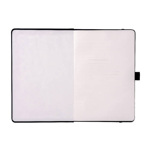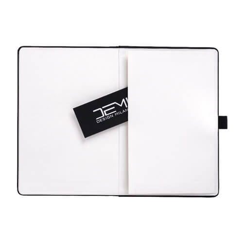 - Dettagli funzionali: chiusura elastica, nastro segnapagina nero e tasca porta biglietti interna.