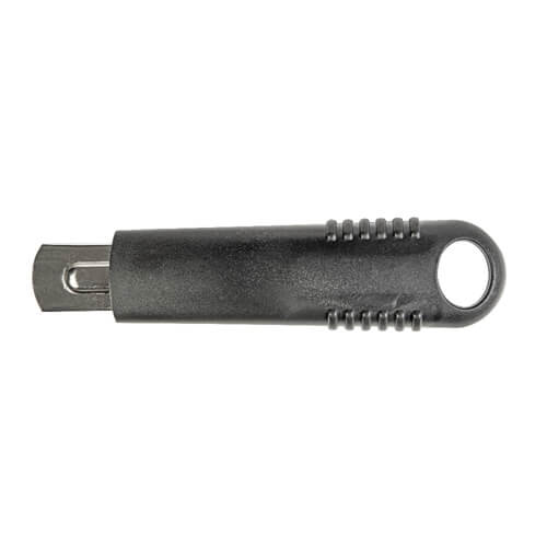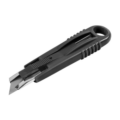 Taglierino con lama retrattile automatica , medio. Colori: Nero - personalizzazione in quadricromia con la bel adesiva