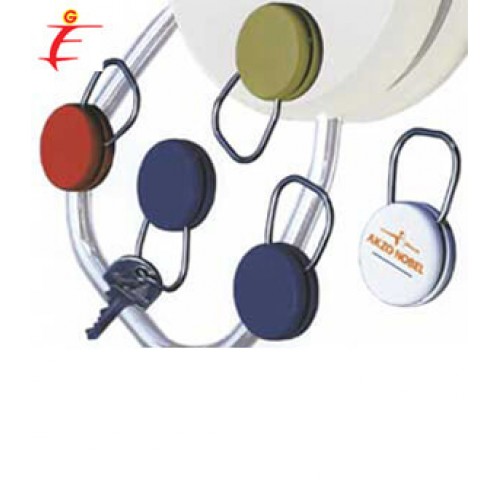 Portachiavi diametro 38x13 mm corpo abs atossico forcella in acciaio zincato disponibile nei colori:bianco blu giallo rosso.