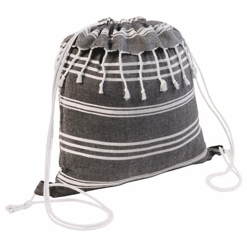 Zainetto in cotone 180 gr/mq effetto fouta, perfetto per unire eleganza e praticità. Questo accessorio è indispensabile sia per il quotidiano che per le avventure estive, grazie alla sua robustezza e al design accattivante.