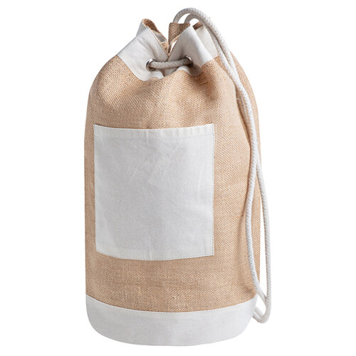 Materiale: Realizzata in un mix perfetto di juta e cotone, questa sacca zaino è sia resistente che ecologica, rappresentando una scelta consapevole per chi cerca alternative sostenibili.