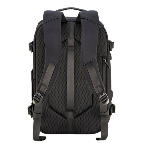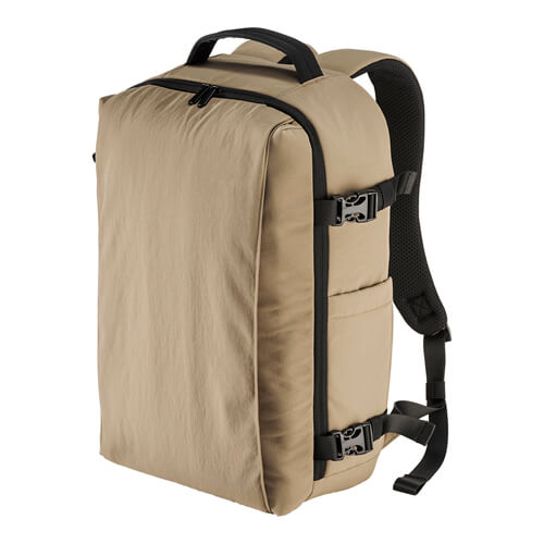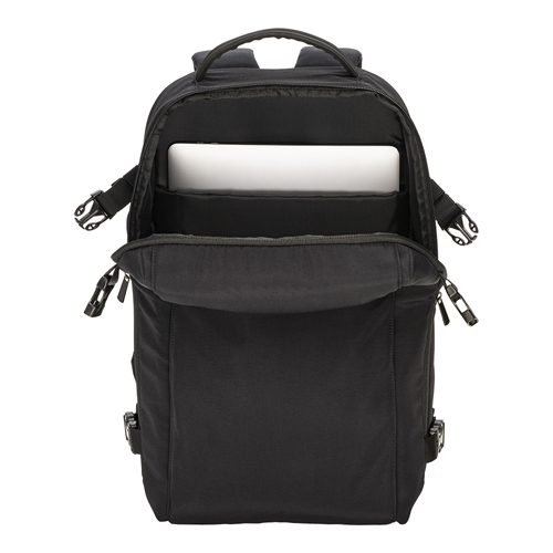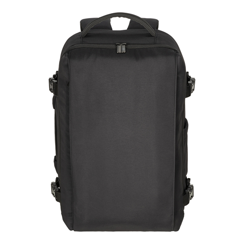 Zaino da viaggio con porta PC da 15" realizzato in nylon taslon, progettato per il trasporto di notebook e accessori in ambito lavorativo e di viaggio.