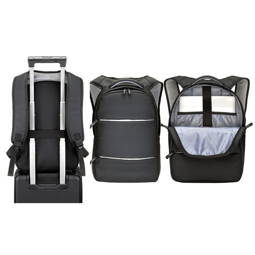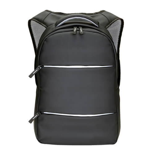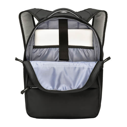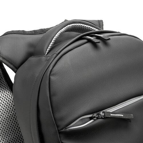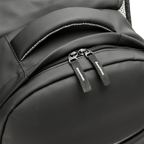 Zaino porta PC in poliestere 600D con rivestimento in PU water resistant progettato per il trasporto quotidiano di notebook e accessori, con struttura compatta e funzionale.