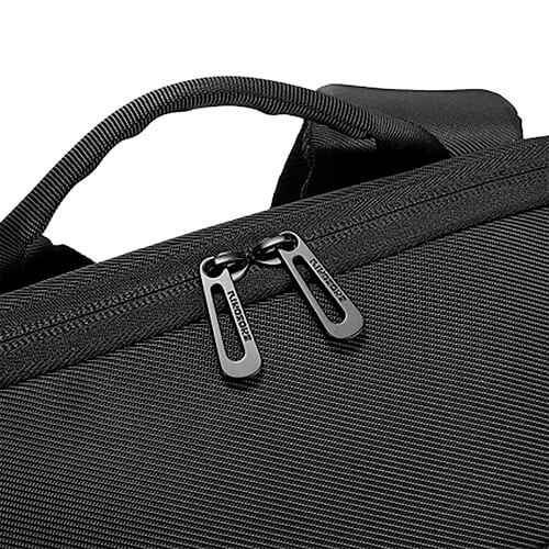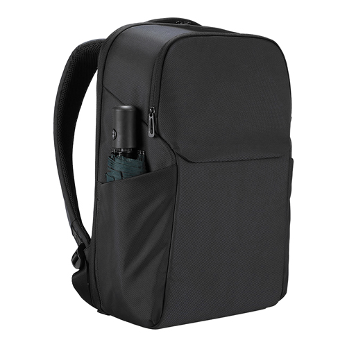 Zaino porta PC strutturato in poliestere twill progettato per il trasporto organizzato di notebook e accessori, con più scomparti e struttura funzionale.